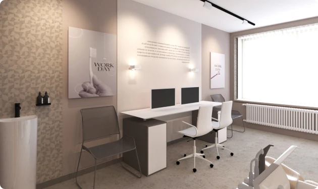 Мы знаем, как непросто открыть свою стоматологическую клинику, и поэтому помогаем нашим клиентам с решением любых задач. Наш подход к созданию проекта: клиника должна дышать новизной и не терять ликвидной стоимости долгие годы. Это должно быть место, где приятно работать врачам и куда хотят возвращаться пациенты.
