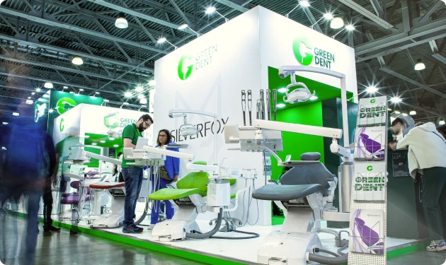 Мы принимаем участие во всех крупных стоматологических выставках: 3 раза в год в Москве (площадь нашего стенда 332 м2), а также в 8 региональных.